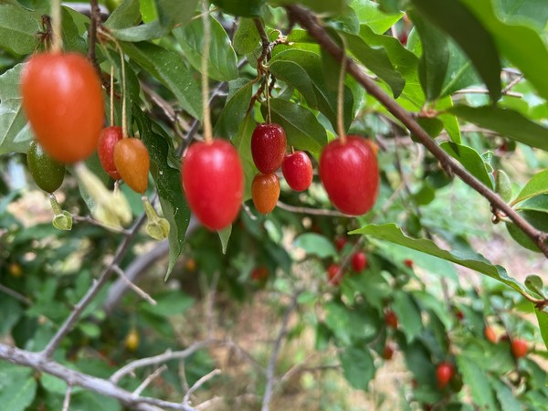 잘 익은 보리수 열매는 6~7월 경 만날 수 있습니다. 과육을 바로 따서 물에 씻어 받아들여도 좋다고해요. 과육은 부드러운 편이라 씹지 않더라도 먹을 수 있다는데 가운데 길쭉한 씨가 있으니 주의하여 흡꾸리는는게 좋좋다고해요. 잘 익은 과육은 달콤한데다가 새콤한 맛이 나는데 덜 익은 과육은 떫은맛이 납니된다고 합니다